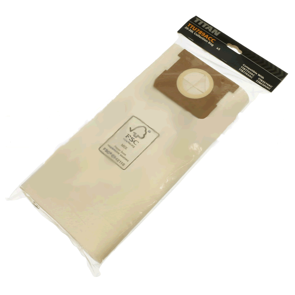 5x TITAN Vacuum Cleaner Bags for 16L/20L/30L/40L Titan Hoovers - High-Quality Replacement Bags
