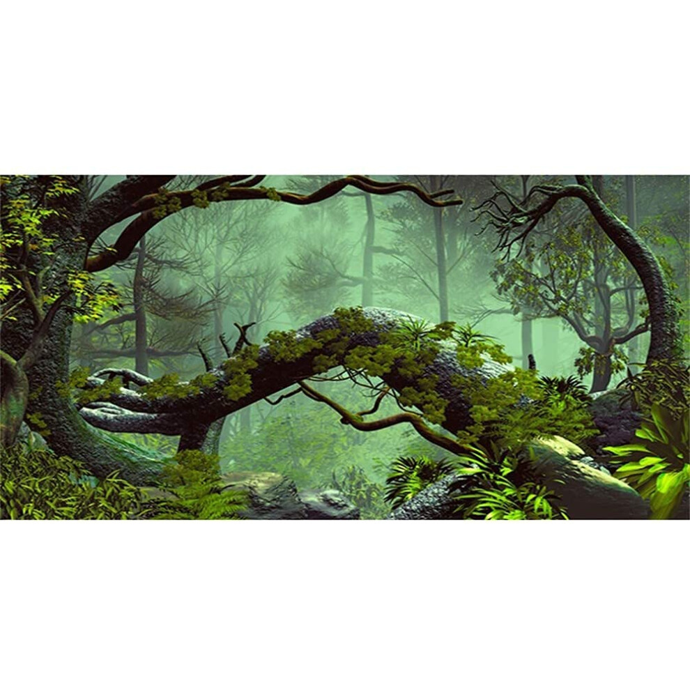 AWERT 30x12 inches Foggy Forest Terrarium Background Stone Green Tree Tropical Reptile Habitat Background Rainforest Aquarium Background Durable Polye