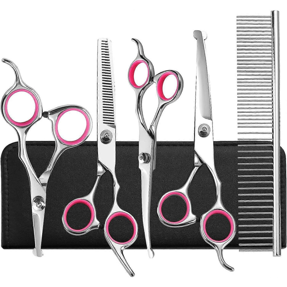 (As show, One size) Ciseaux pour Chien, Ensemble de 5 Outils de Toilettage en Acier Inoxydable Enduit de Titane pour Animaux de Compagnie, Cisaille E