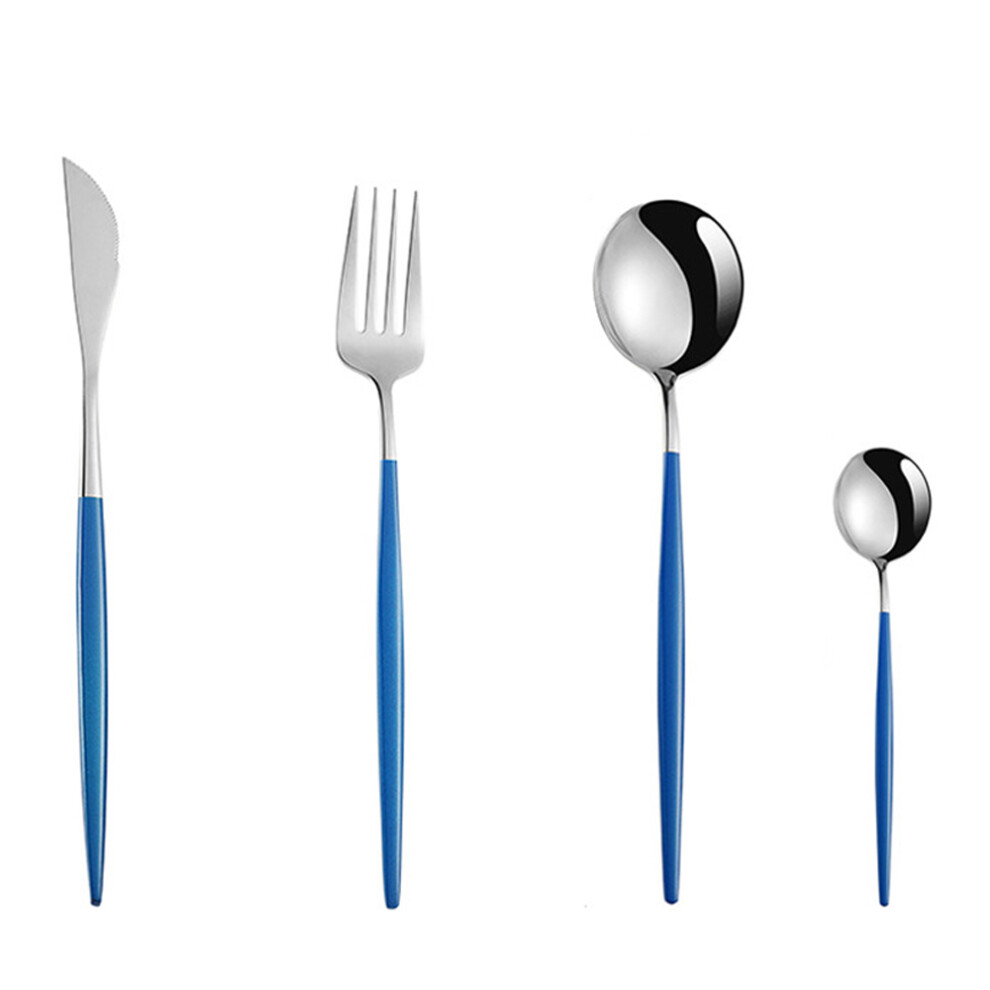 1Set Titanium Blue Cutlery Set 304 Stainless Steel Dinnerware Black Flatware Set Dinner Knife Fork Spoon Dropshipping