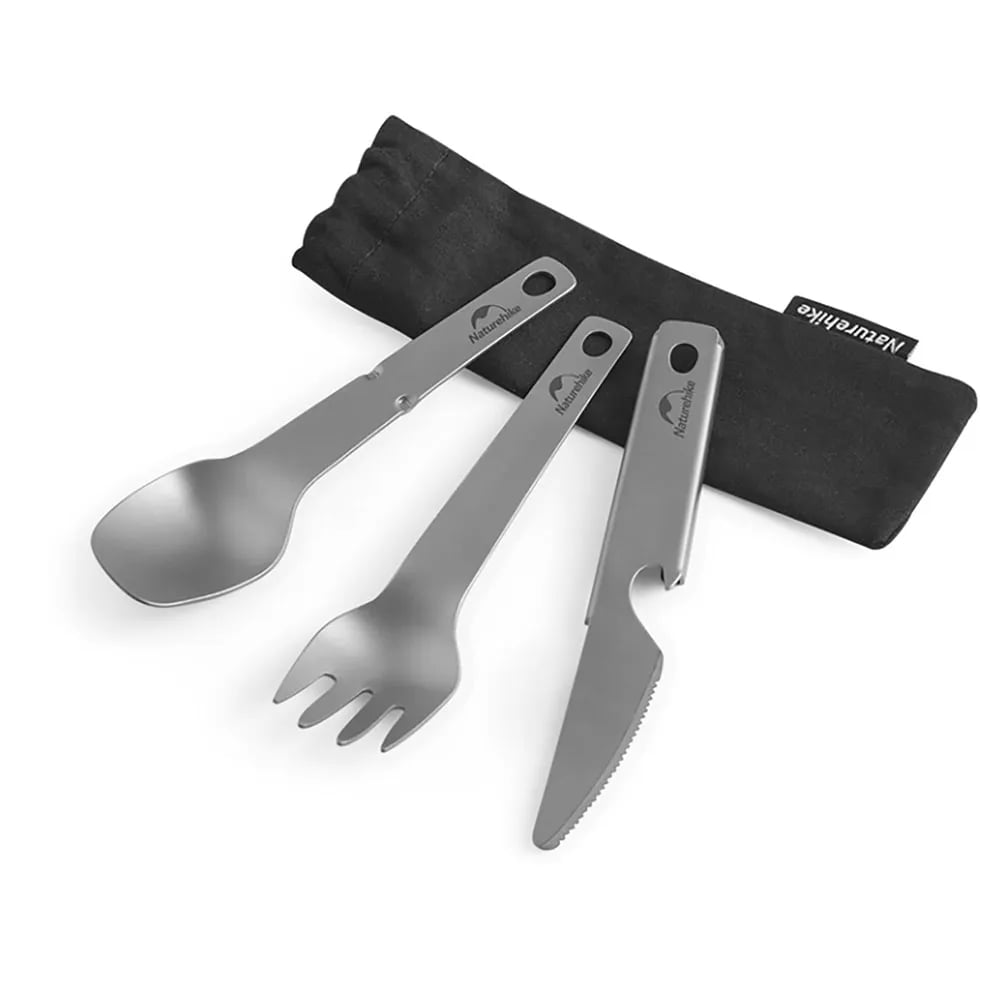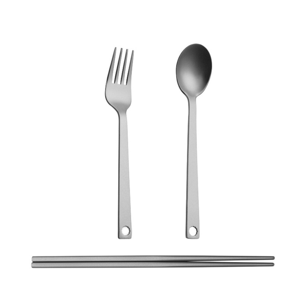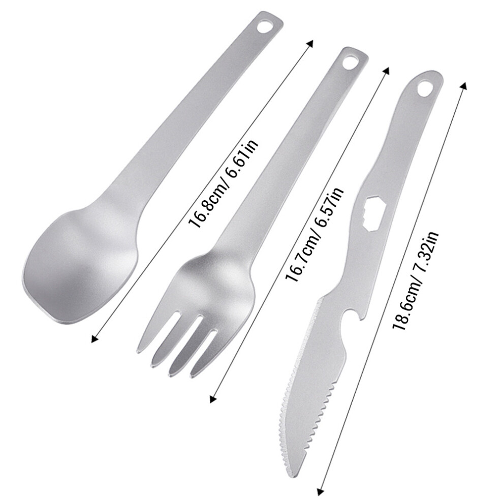 (As show, One size) Titanium 3 Piece Cutlery Set Lightweight Spoon compatiblek Cutter