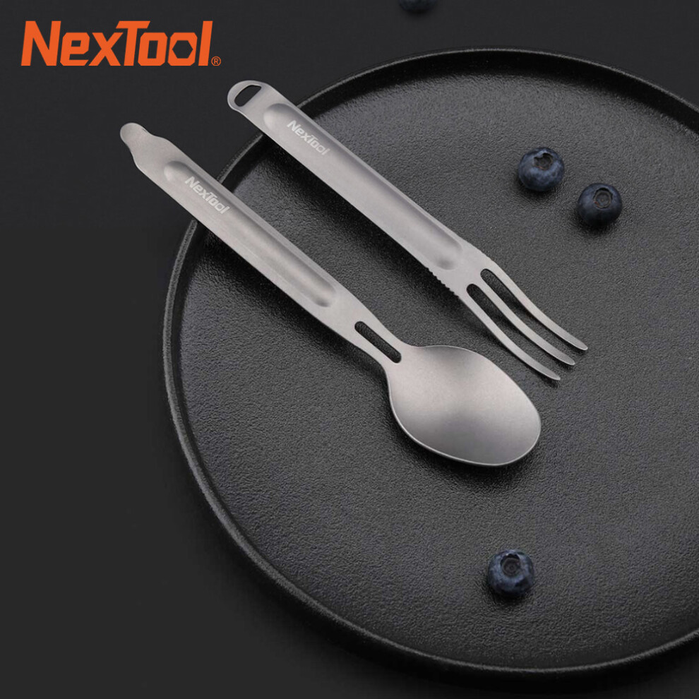 Nextool Outdoor Titanium Fork Spoon Cooking Titanium Spoon Tableware Cutlery Spork Set Portable For Camping Picnic