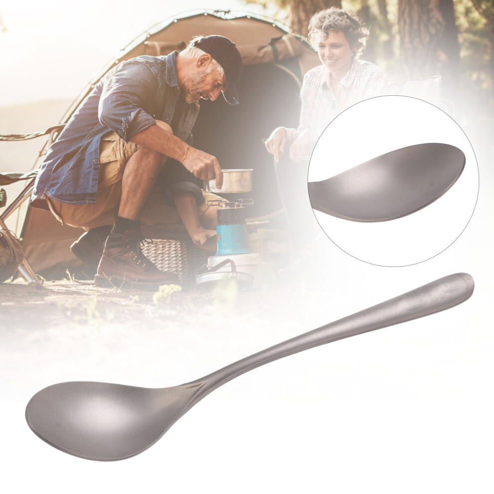 01 02 015 Titanium Cutlery Set, Outdoor Camping Cutlery Environmental Protection Titanium Spork Set for Traveling for Outdoor Camping(Long handle spoon)