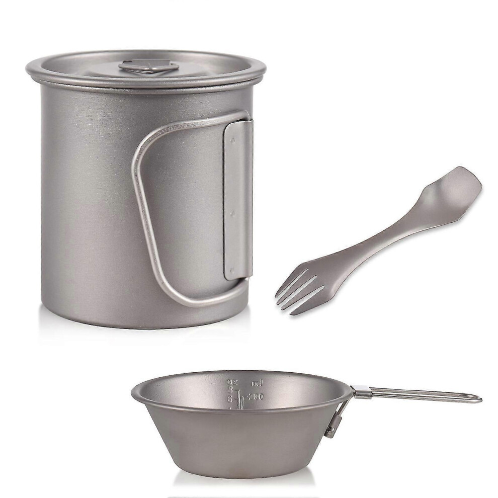 (As show, One size) Camping Cutlery Titanium Cup Bowl Spork Titanium 3 Pieces Set