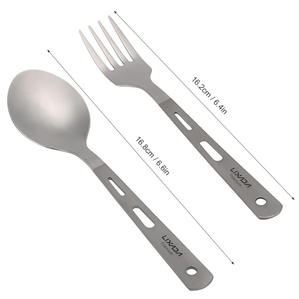 Lixada Titanium Spoon Fork Cutlery Set Lightweight