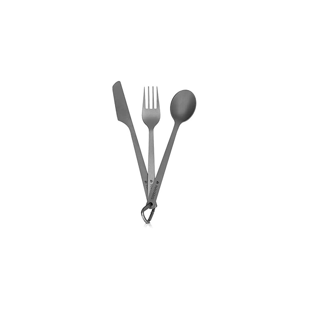 Lifeventure Superlight Titanium Camping Cutlery Set With Karabiner - Ultra Lightweight Camping Cutlery Ideal For Camping Or Travel