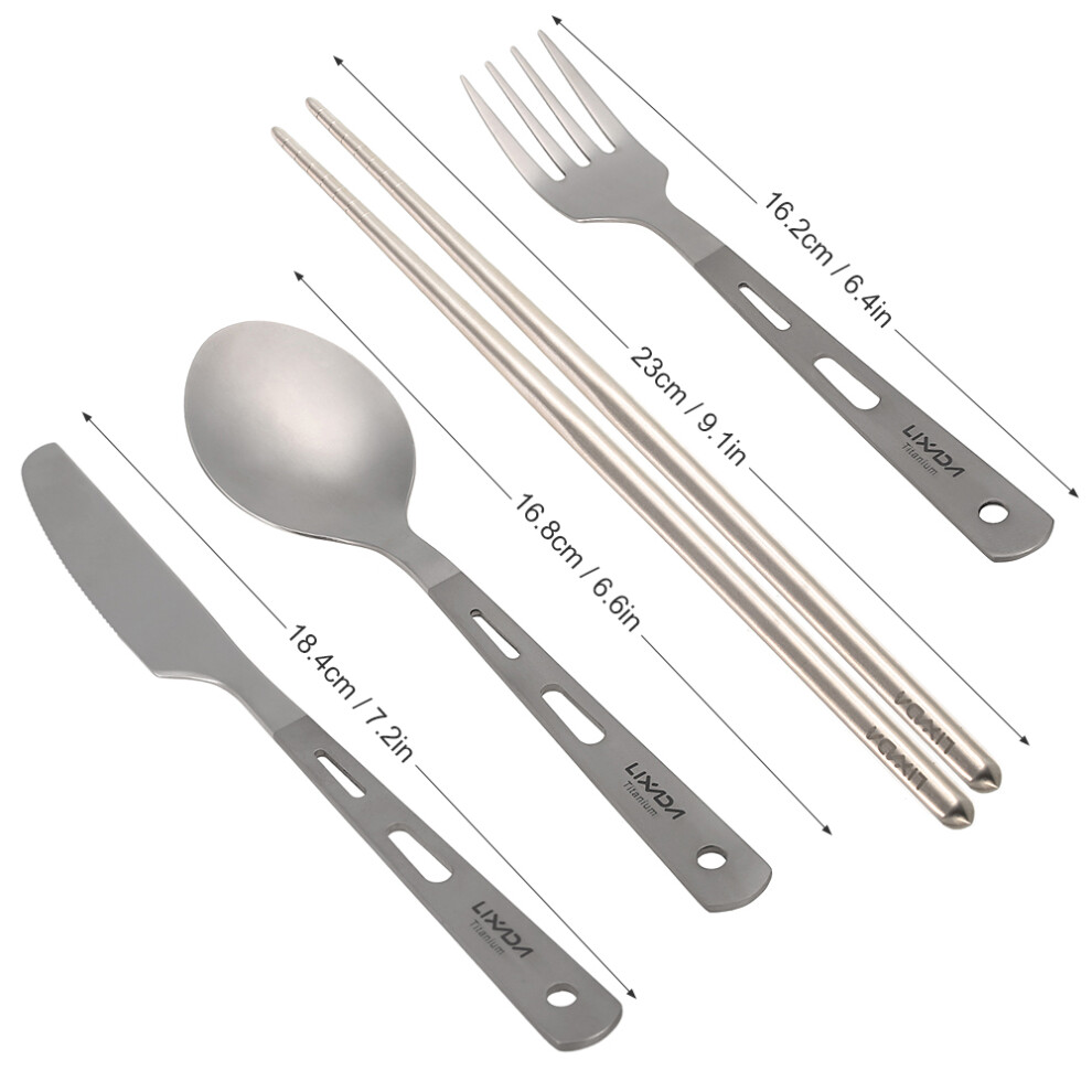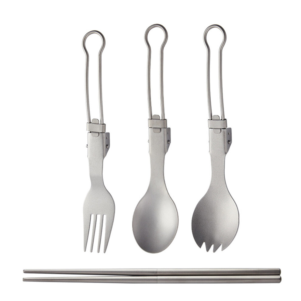 Outdoor Titanium Cutlery Set Fork Spoon Knife Chopsticks for Camping Picnic