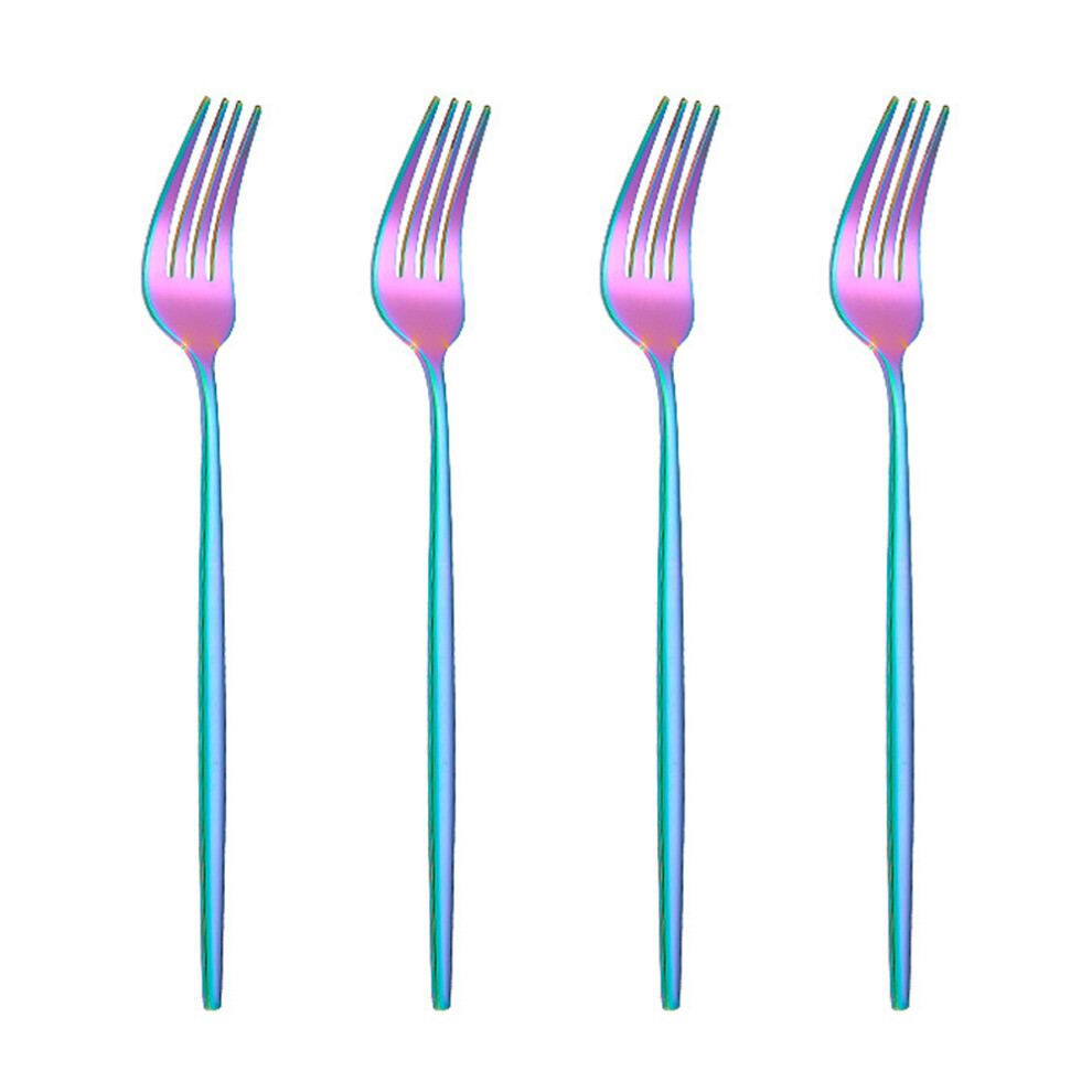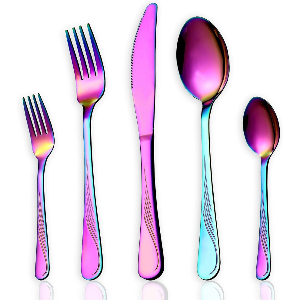 5 Piece Rainbow Color Dinner Set, Stainless Steel Titanium Colorful Plated Cutlery Set