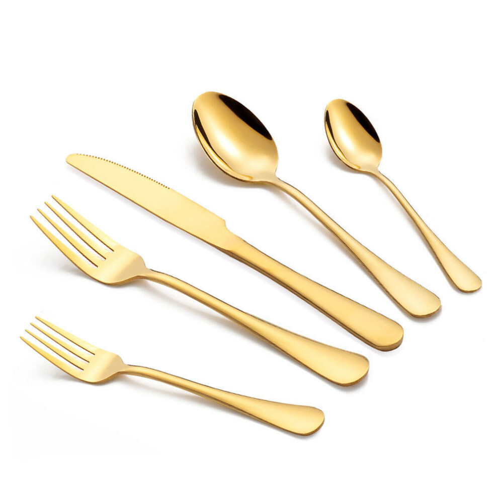 Titanium Coated Cutlery Set, Elegant Design Stainless Steel Utensils, Rust Resistant Mirror Polished Tools, Well Balanced With Firm Grip, Dishwasher S