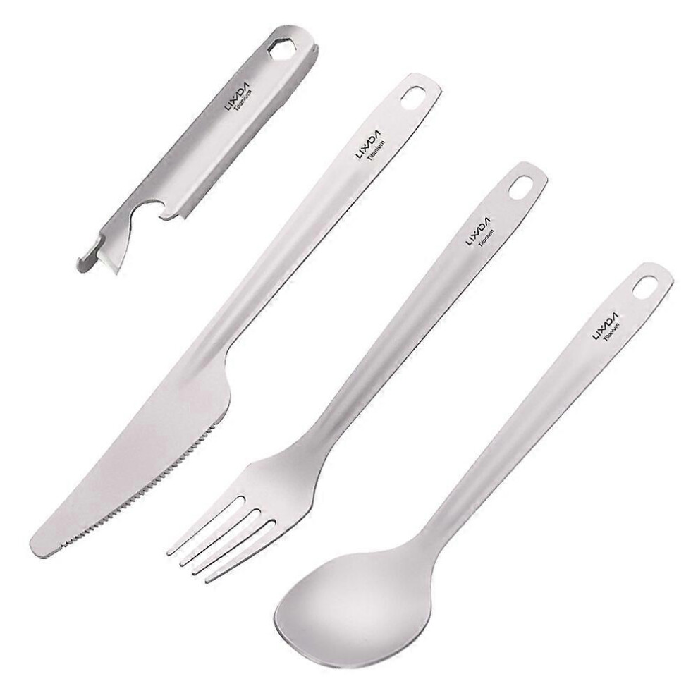 (As show, One size) Lixada 4-in-1 Titanium Flatware Cutlery Set Lightweight Dinner Spoon Fork Cutter with Multifunctional Storage Holder Bottle Opener