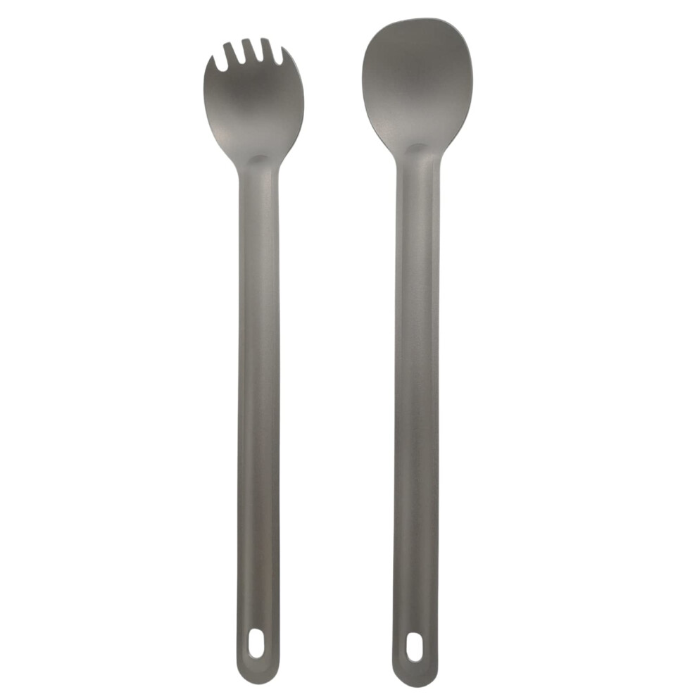 2pcs Titanium Long Handle Cutlery Set â Spoon & Spork for Camping & Outdoors