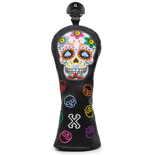 Montela Golf Club Head Covers,Colorful Skeleton Golf Driver Covers Fairway Wood Head Cover Hybrid Headcover Leather 3 Wood Headcovers Golf Head Covers for Scotty Cameron Taylormade Titleist Odyssey