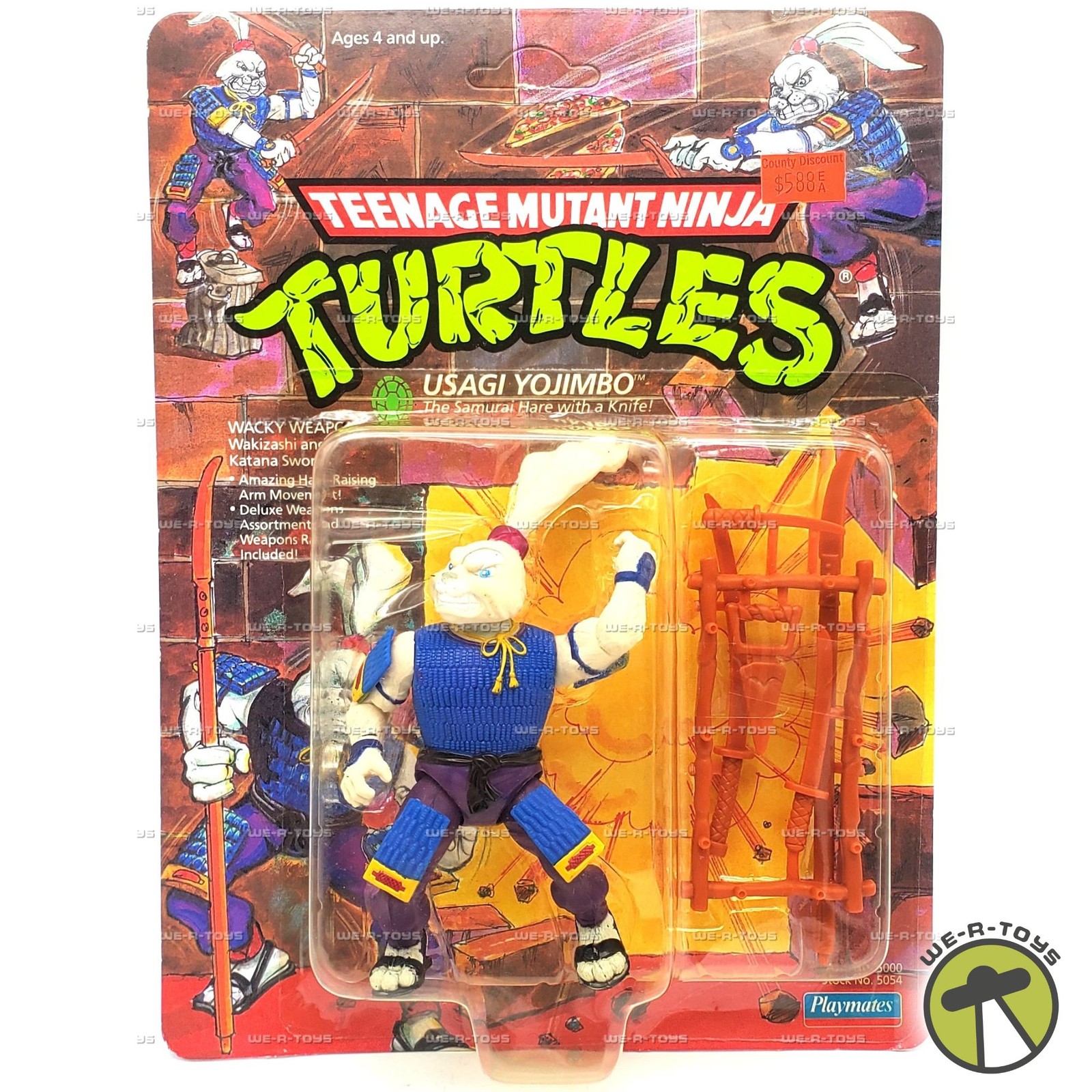 TMNT Usagi Yojimbo Action Figure Unpunched 19 Back 1989 Playmates Toys #5054