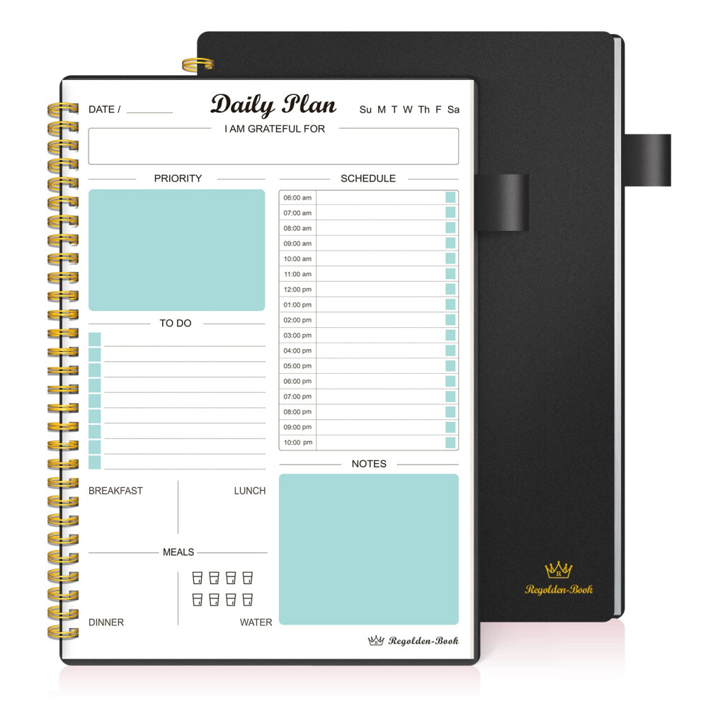 Daily Planner Undated, To Do List Notebook with Hourly Schedule Regolden-Book Calendars Meal, Spiral Appointment Organizers Notebook for Man/Women, P