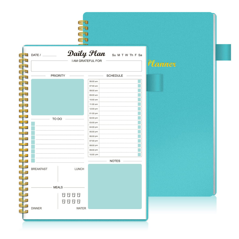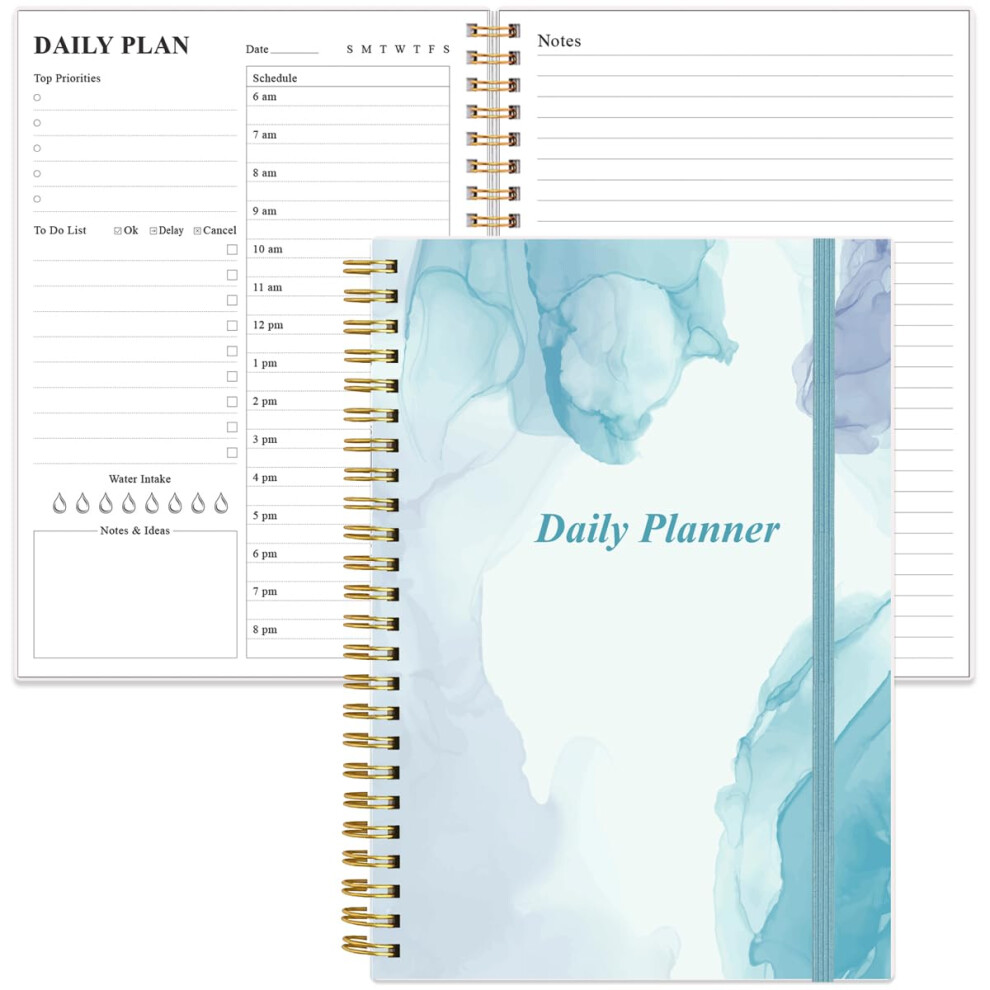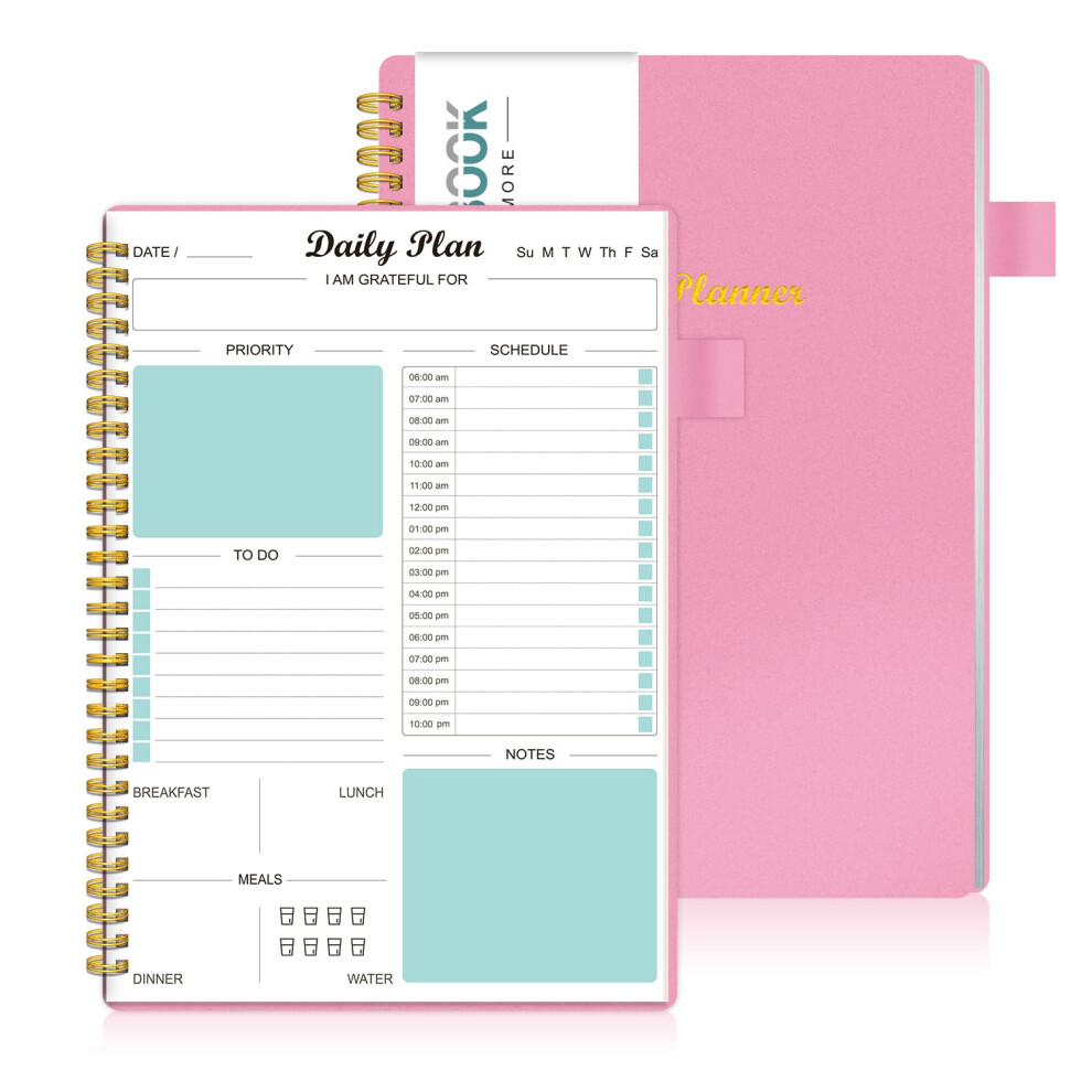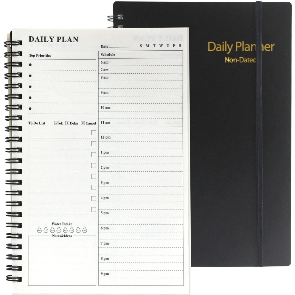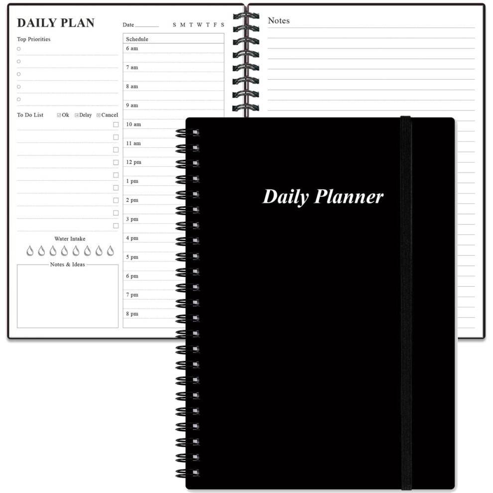 Daily Planner Undated, To Do List Notebook with Hourly Schedule calendars Meal, Spiral Appointment Organizers Notebook for ManWomen, Pocket,Pen Loop,