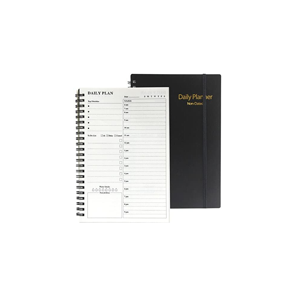 Daily Planner Undated, Asten to Do List Notebook Hourly Schedules Spiral Appointment Planner for Men and Women,PVC Hardcover,Elastic Closure, Inner Pocket 14.7 x 21.2cm (Black)