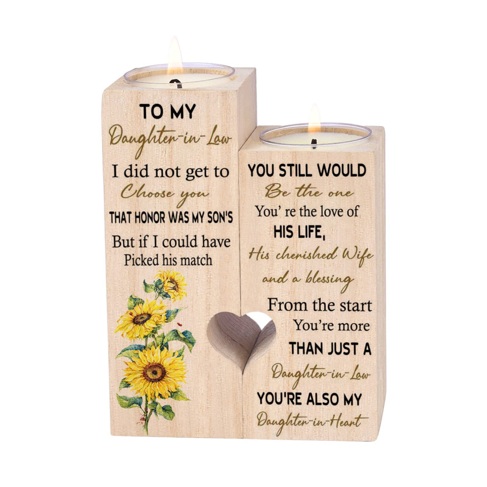 to My Daughter-in-Law from The Start You're More Than JUST A Daughter-in-Law You're Also My Daughter-in-Heart Personalized Wooden Candle Holder for Co