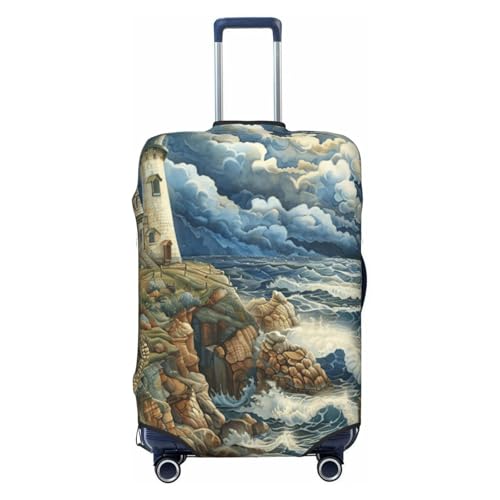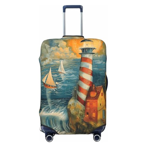 EnkzpoHen The Seaside Lighthouse Print Elastic Suitcase Cover,Suitable Business Trips and Holidays (S to XL)