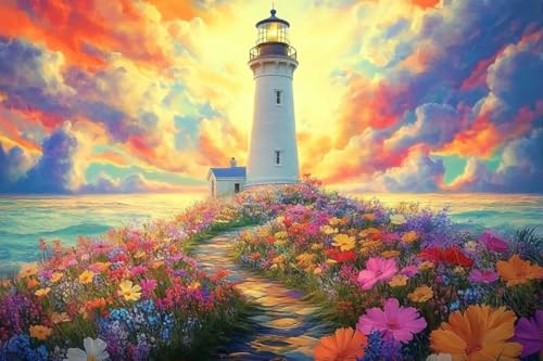 Jigsaw Puzzle for Adults Flower Road to The Lighthouse Colourful Clouds Cartoon Jigsaw Puzzle with All Fitting_1000pcs