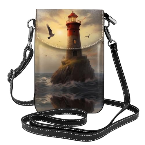 LLKGO TLittle sparrow flying to the lighthouse Pattern Crossbody bag, mobile phone bag, women's small wallet, a practical gift suitable for going out, exercising, and shopping