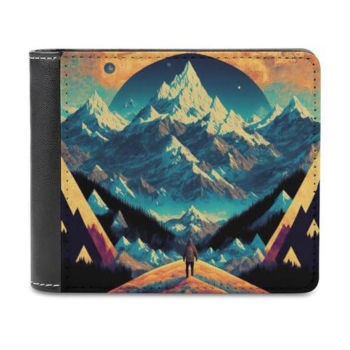 sinyumoney Journey to The Mountains 3D Print PU Leather Wallet Multiple Slots Banknote Compartments Stylish Durable Men's Wallets Gifts 11.7cm*9.5cm