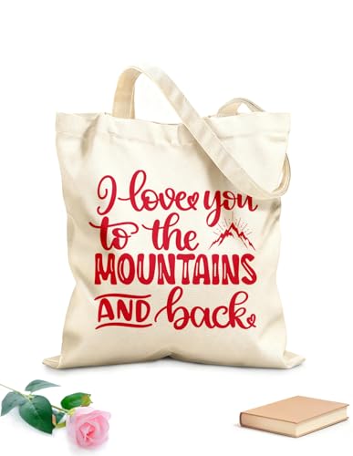 XIARON Cotton Canvas Shopping Bag i love you to the mountains and back heart valentines day love be mine holiday 340g/m² thick fabric Uses as a gift bag L Carmine Red