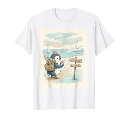 Penguin Hiking to The Mountains Satirical T-Shirt