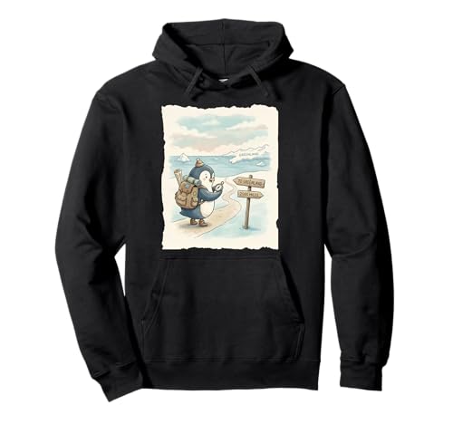 Penguin Hiking to the Mountains Satirical Pullover Hoodie