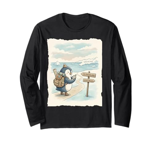 Penguin Hiking to The Mountains Satirical Long Sleeve T-Shirt