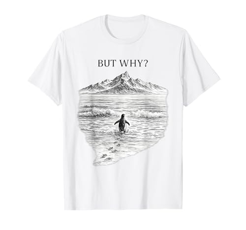 But Why Penguin – Funny Penguin Walking to The Mountains T-Shirt