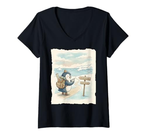 Women's Penguin Hiking to The Mountains Satirical V-Neck T-Shirt