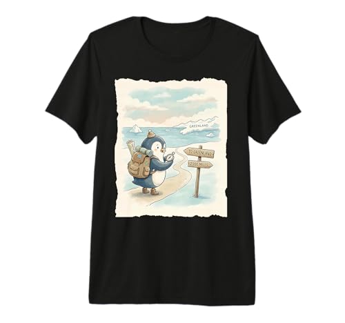 Penguin Hiking to The Mountains Satirical Premium T-Shirt