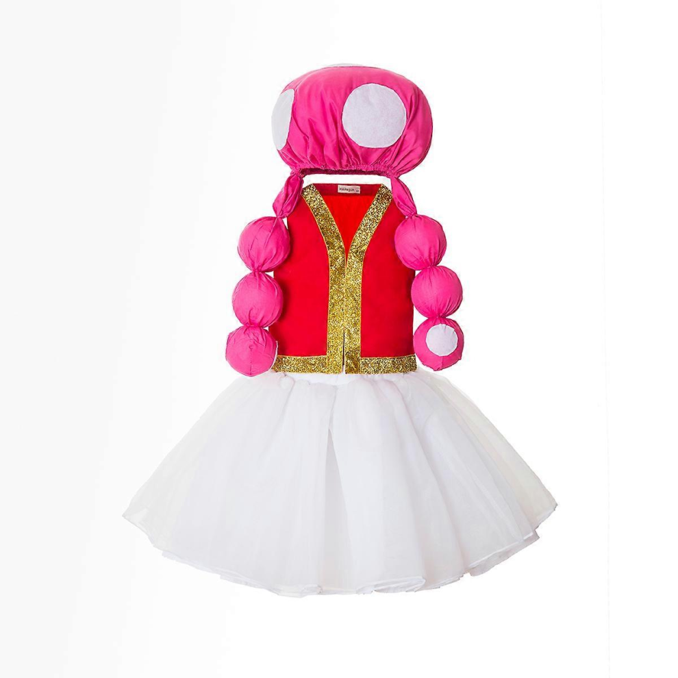 AYYOHON Toadette Costume Toadstool Pink Dress with Waistcoat for Women Halloween Cosplay Toad Mushroom Vest Dress Outfit M