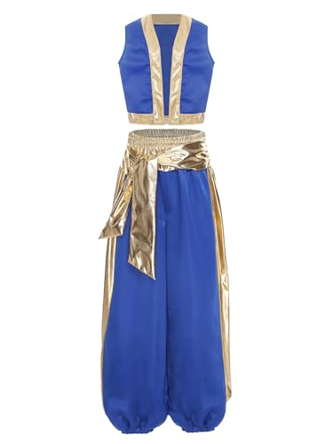 Runhomal Kids Arabian Prince Vest With Pants Halloween Cosplay Costume Toad Bros.mario Game Character Dress Up Royal Blue 11-12 Years