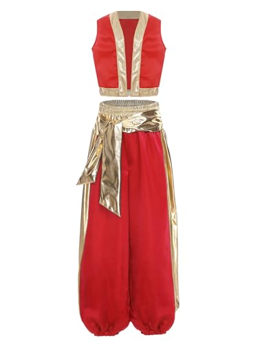 inlzdz Kids Halloween Toad Game Character Costume Open Front Vest Waistcoat for Halloween Cosplay Arabian Prince Red 15-16 Years