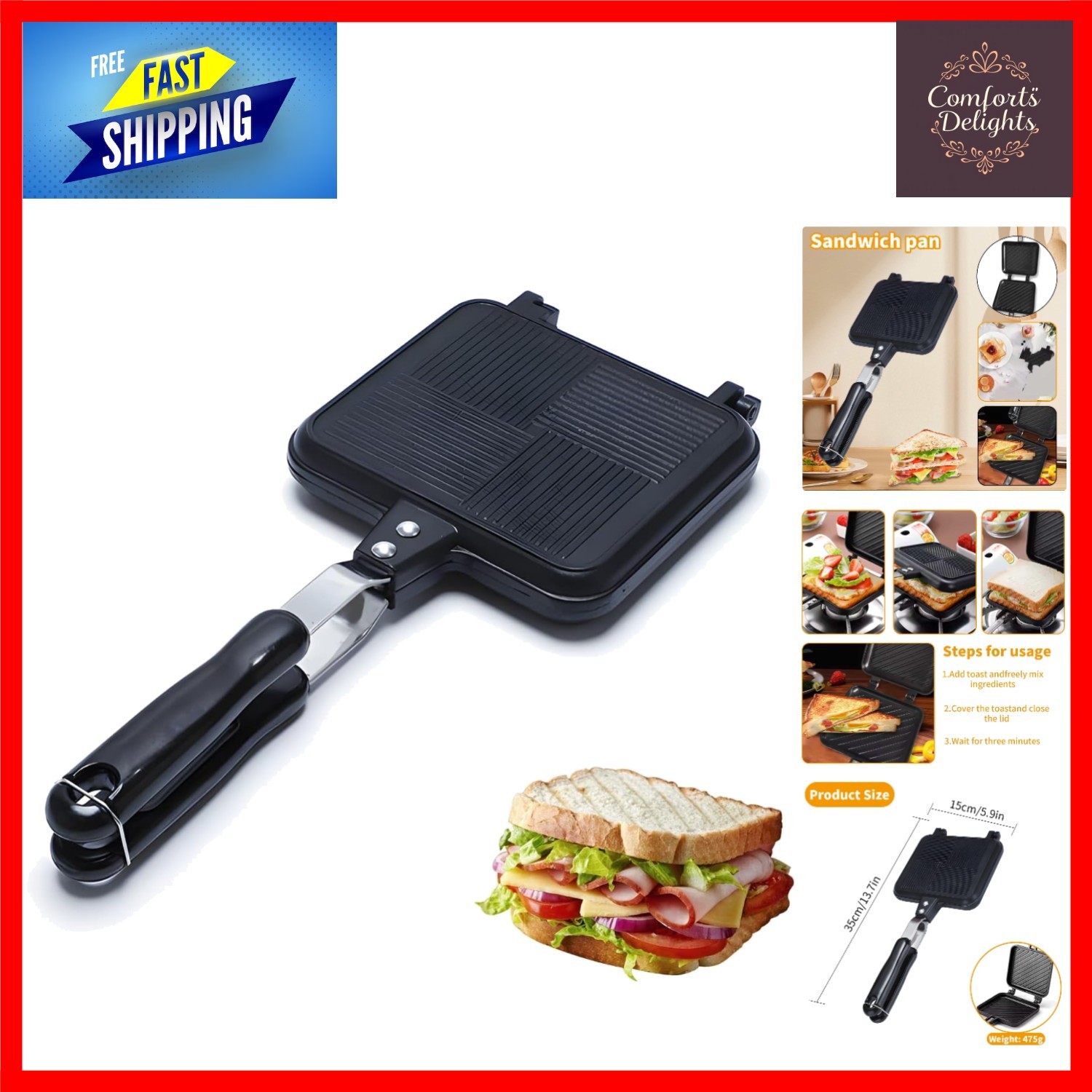 Toasted Sandwich Maker,Double-Sided Toaster Pan