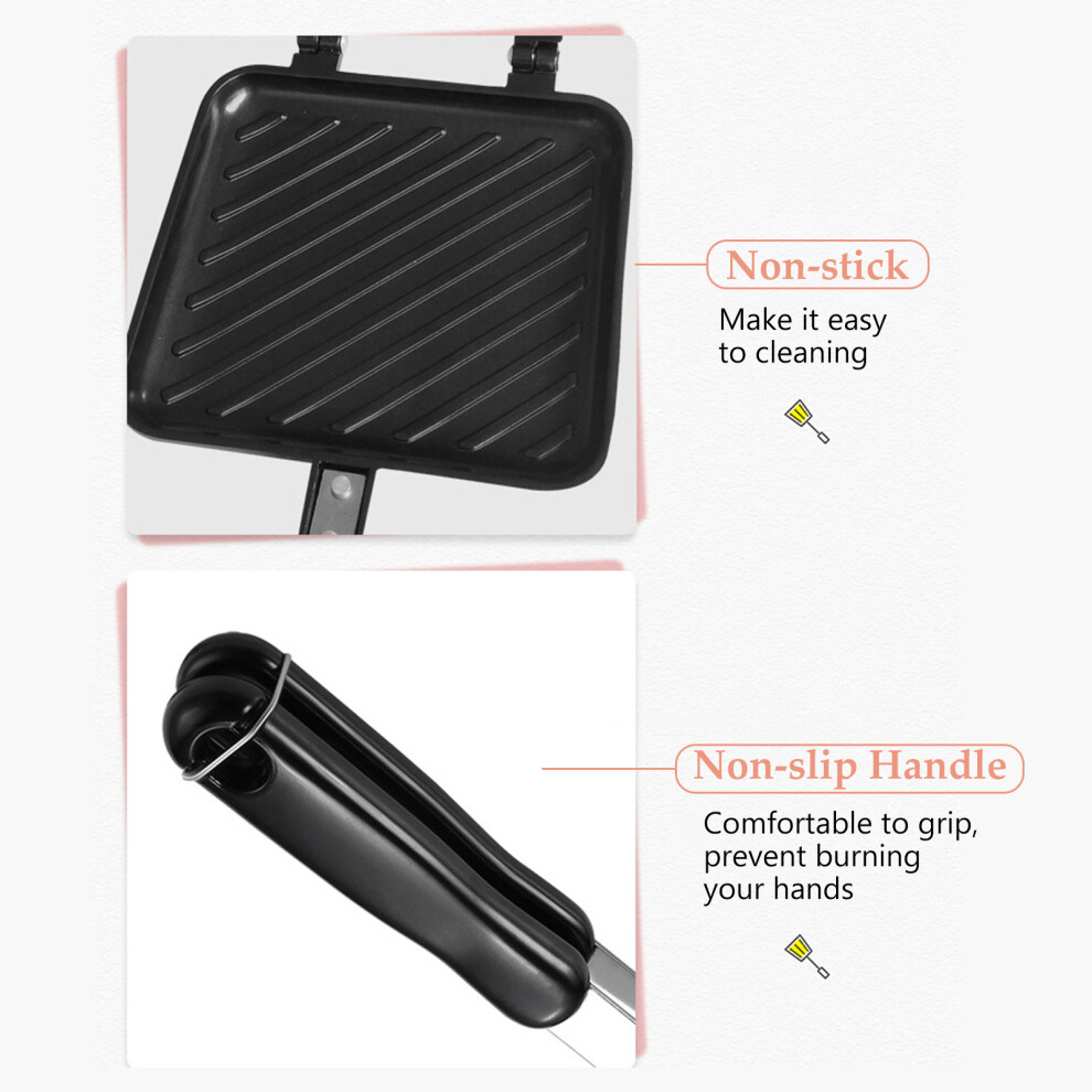 Toasted Sandwich Maker, Non Stick Coating Grill Pan Double Sided Frying Pan with HeatResistant Handles