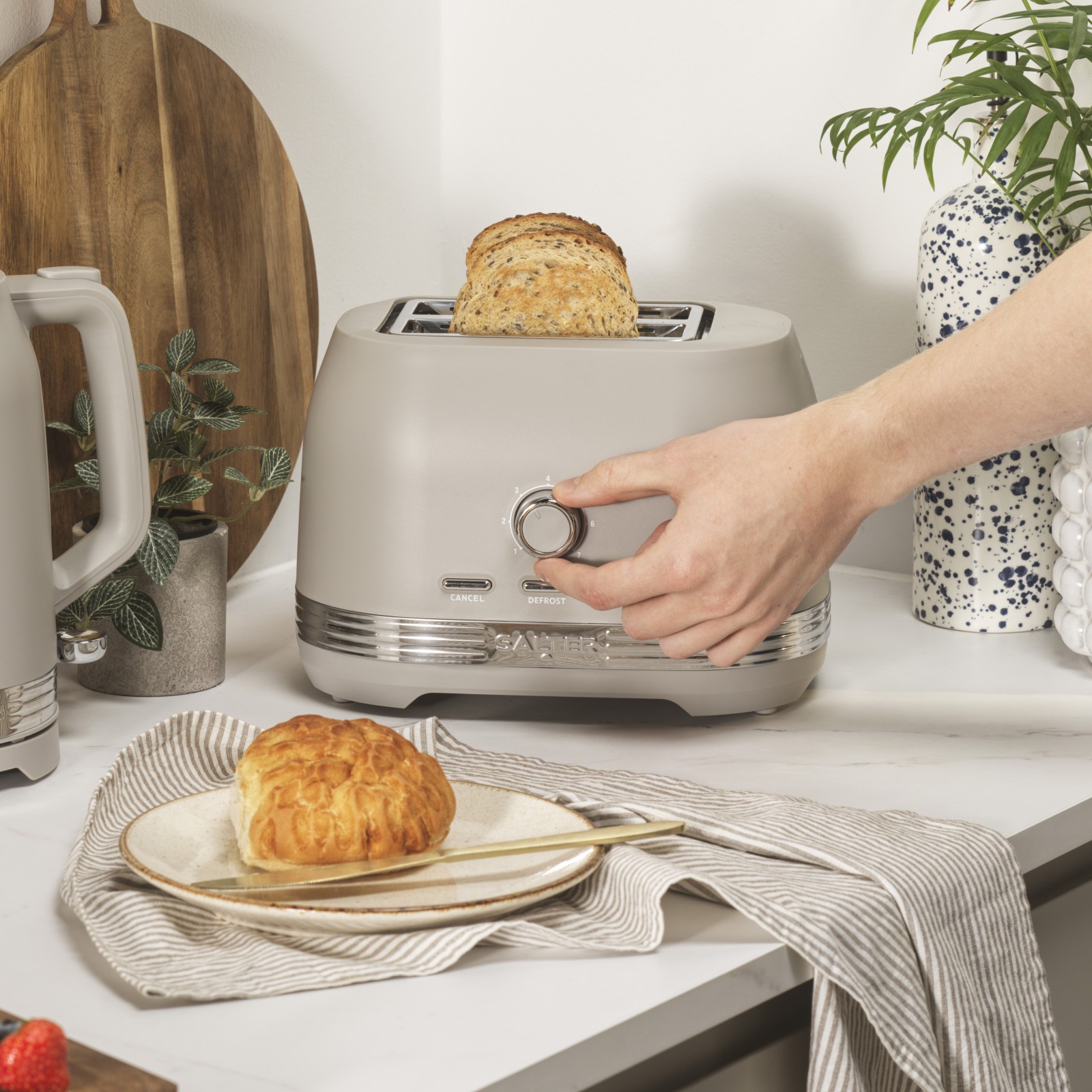 Salter Rise Toaster 2 Slice 7 Browning Defrost Reheat Crumb Tray 800W Matte Grey