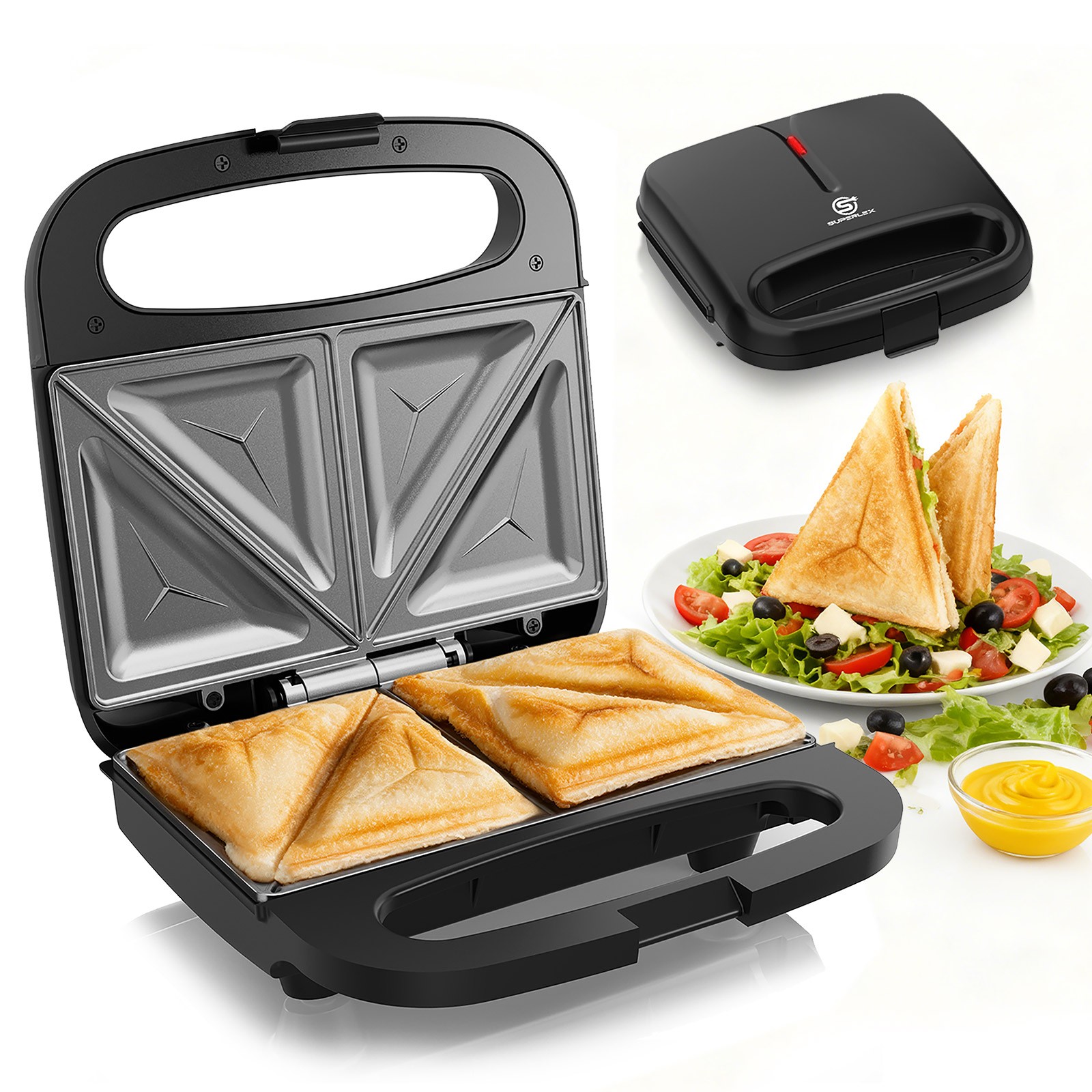 SUPERLEX Sandwich Maker Toaster 750W 2 Slice Auto Temp Control 3Min Golden Toast