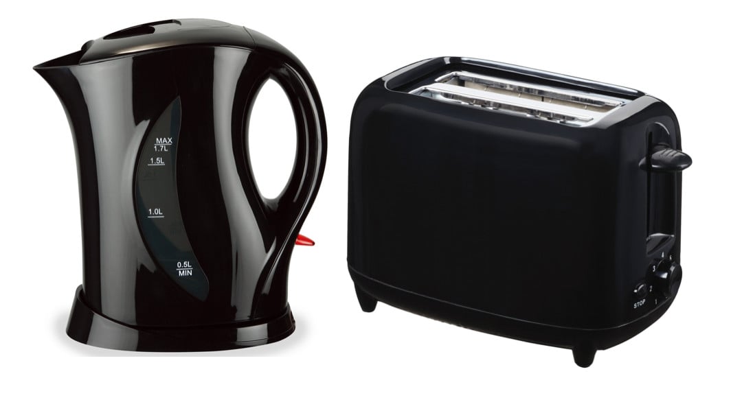Quest Kettle 1.7L + Toaster 2 Slice Black Low Wattage Caravan Motorhome Boat Van