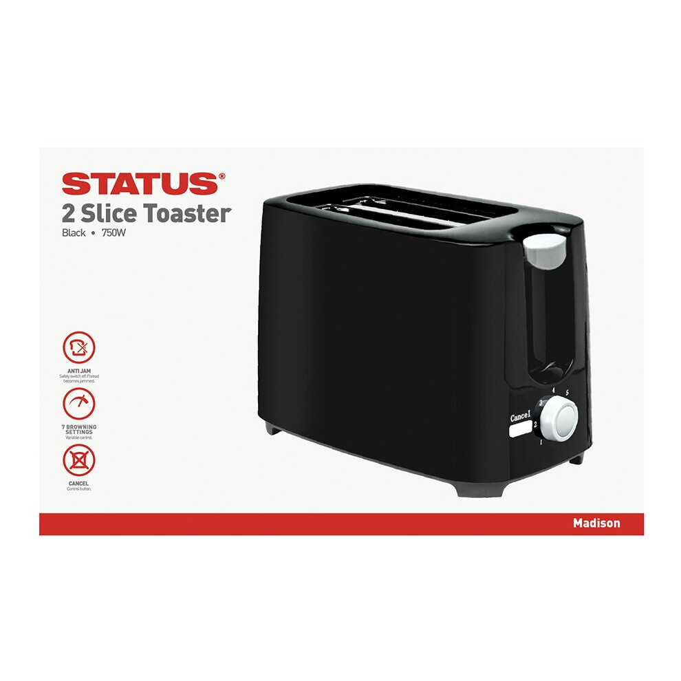 Status International Madison Toaster 2 Slice 750W Black 2SLBLKMADISONX4