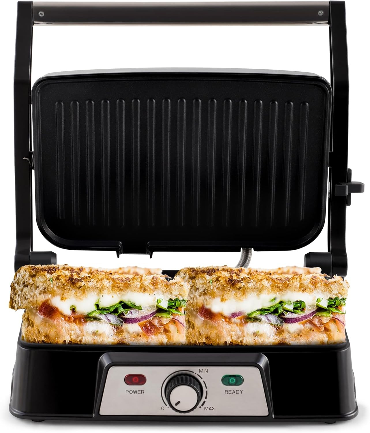 Vonshef Panini Press Grill – Sandwich Toaster 2 Slice with Non-Stick Plates, 100