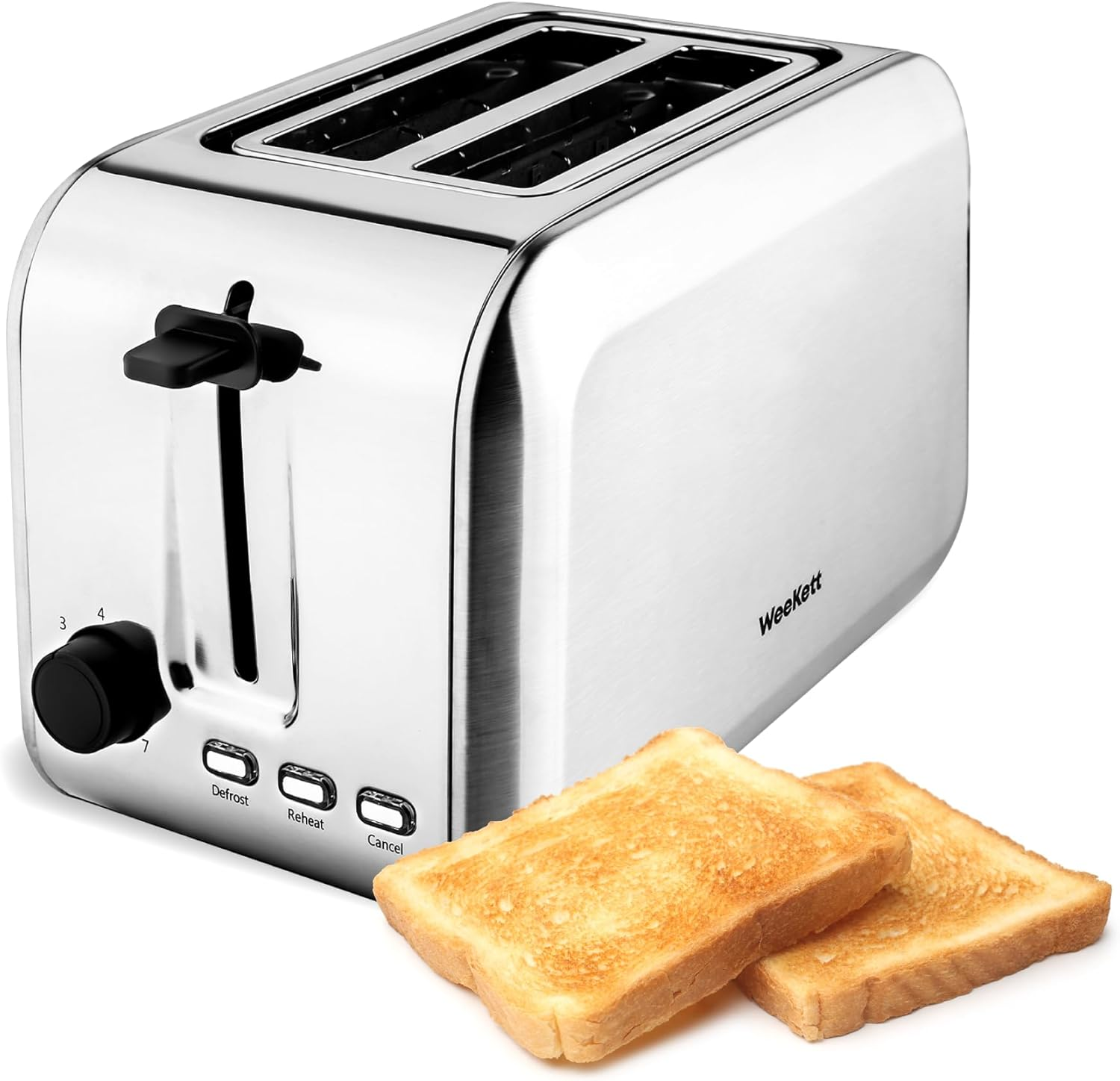 WeeKett 2 Slice Toaster - 2 Slice with Variable Browning Control - Stainless Steel with Wide Slots for Thick Bread Slices & Bagels - Sleek & Compact, 15.8 x 28.8 x 17.8cm