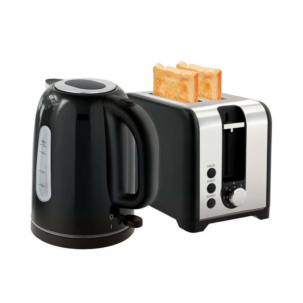 Daewoo Black ‘Kensington’ Pyramid Matching 2 Slice Toaster and Kettle Set 1.7 Litre 3000W Bundle Pack