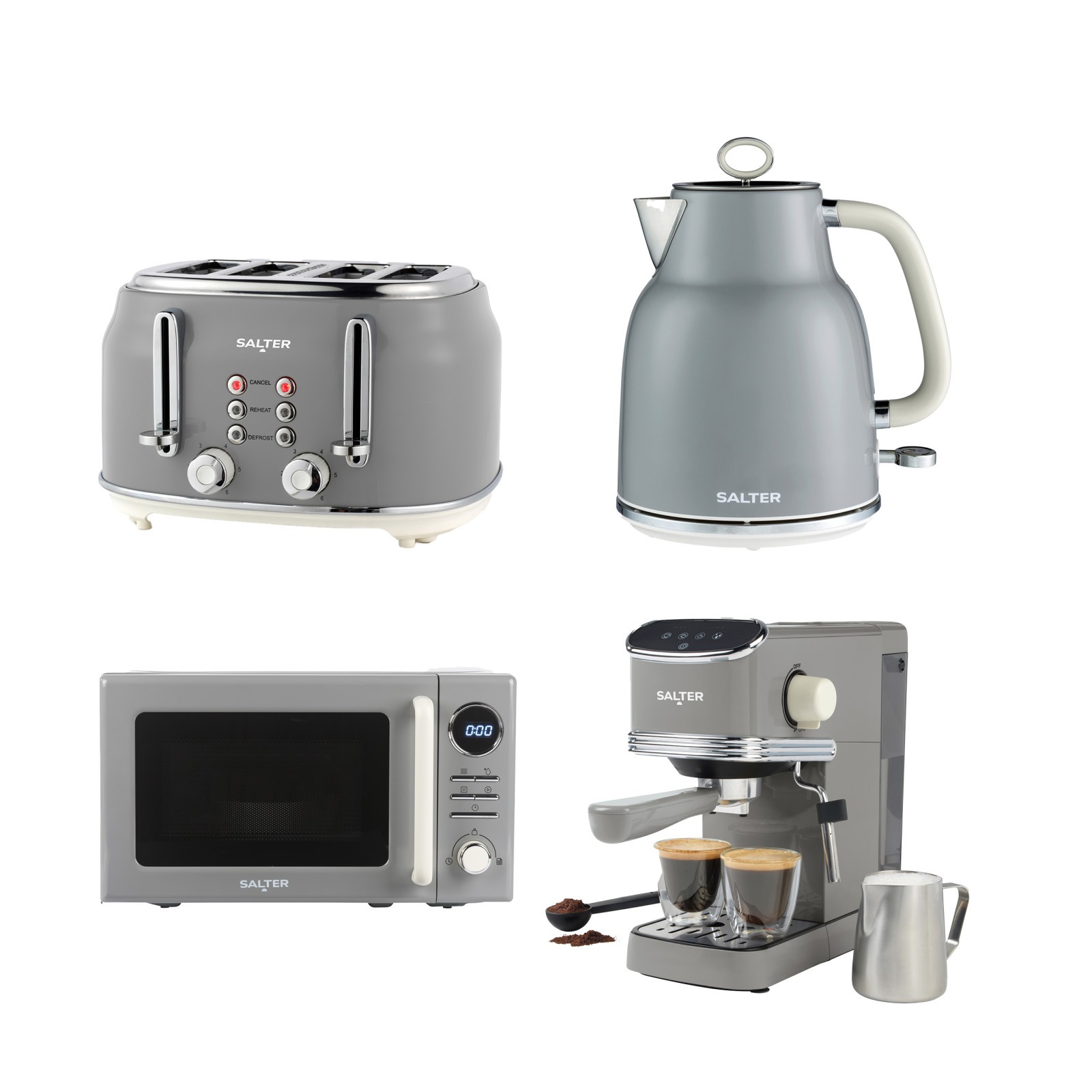 Salter Retro Grey Kitchen Set – Kettle, Toaster, Microwave & Espresso Machine