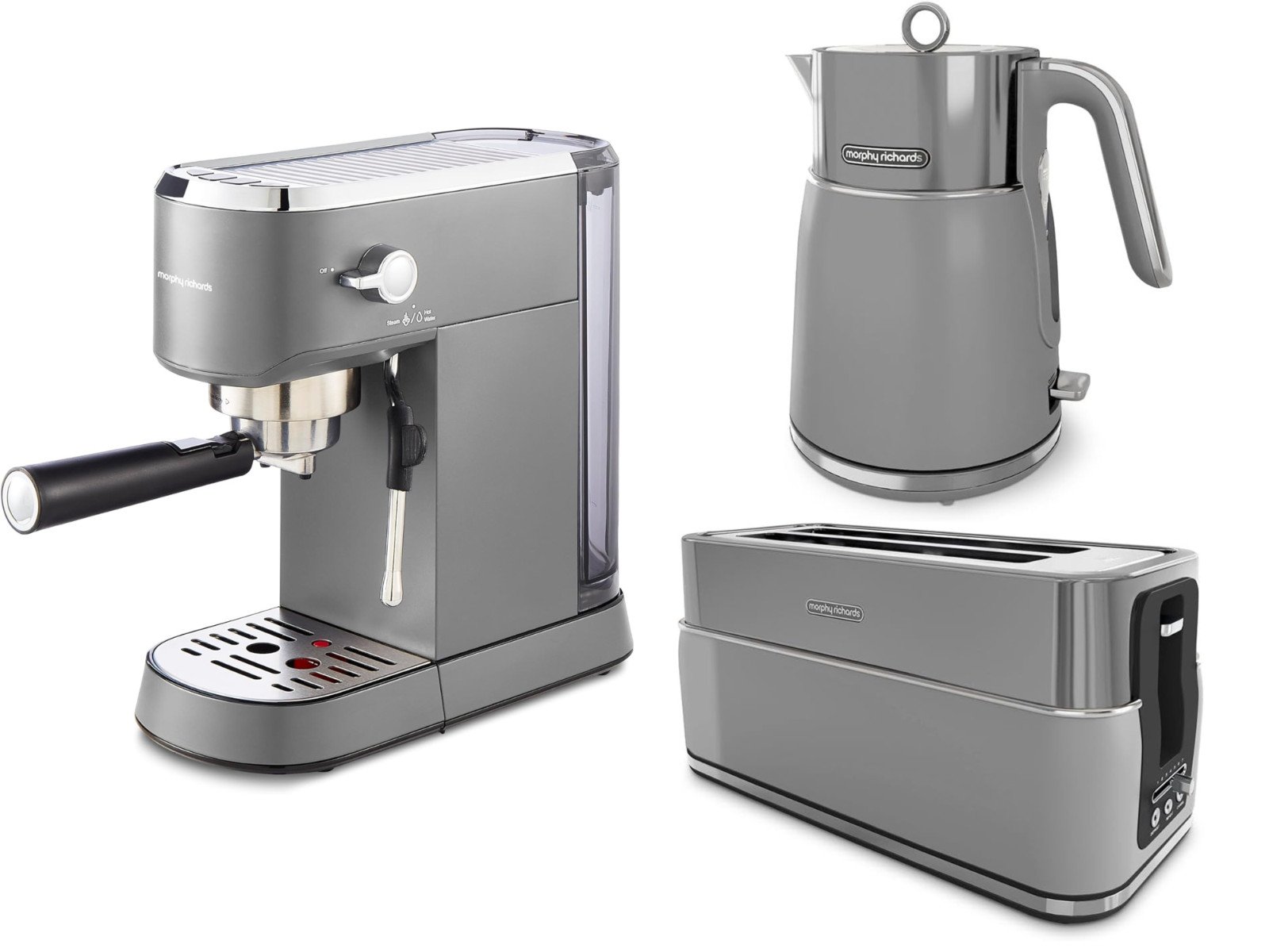 Morphy Richards Signature Grey Kettle Toaster & Espresso Coffee Machine Set