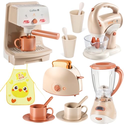 Educational Kitchen Toy Set for Kids, Role Play Coffee machine, Toaster, Blender & Mixer, Interactive Toy for 3+ Year Olds, Birthday Gift for Girls & Boys