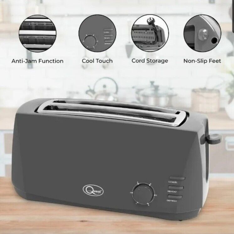 Quest 4-Slice Toasters with Extra Wide Slots / Variable Browning Control- Grey