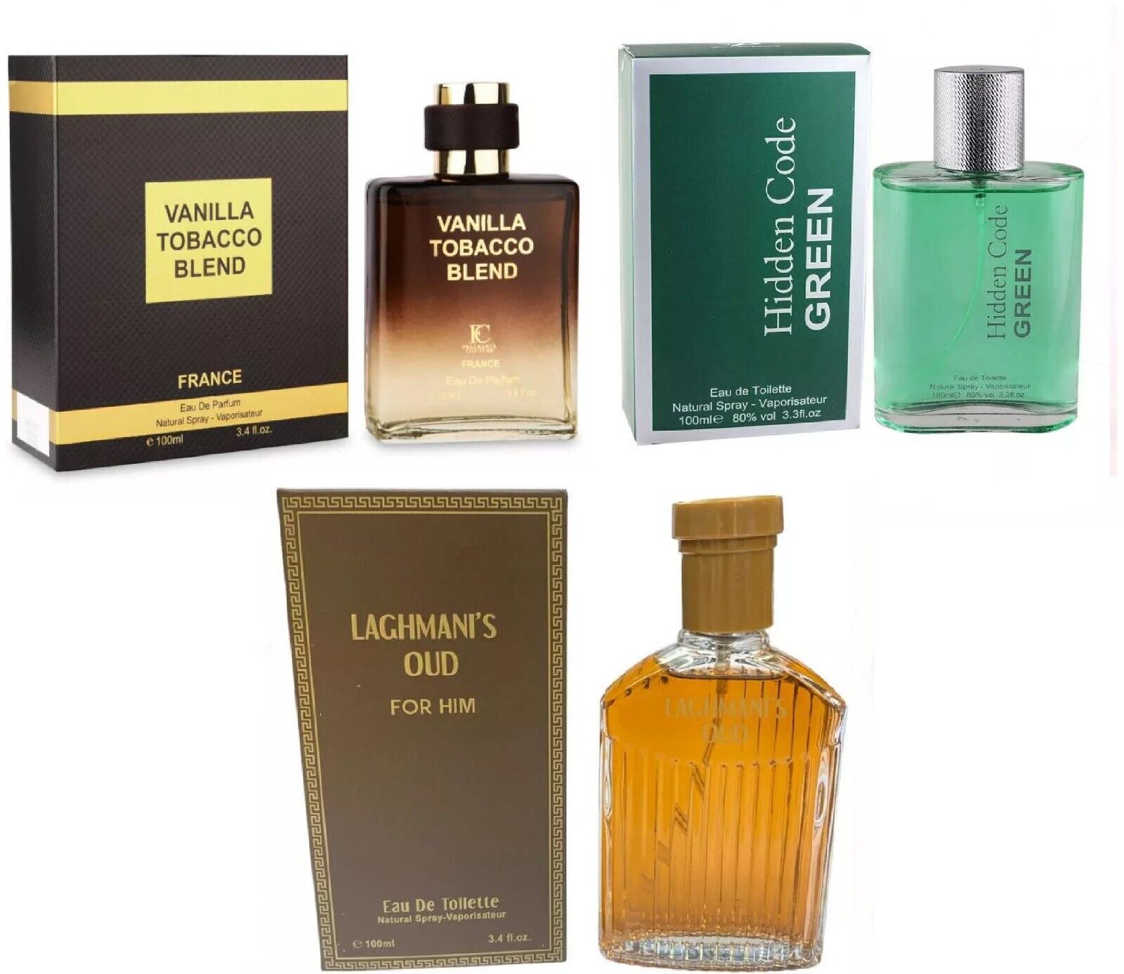 3 Pack Men's Perfume Vanilla Tobacco Laghmani OUD Hidden Code Green EDP 100ml