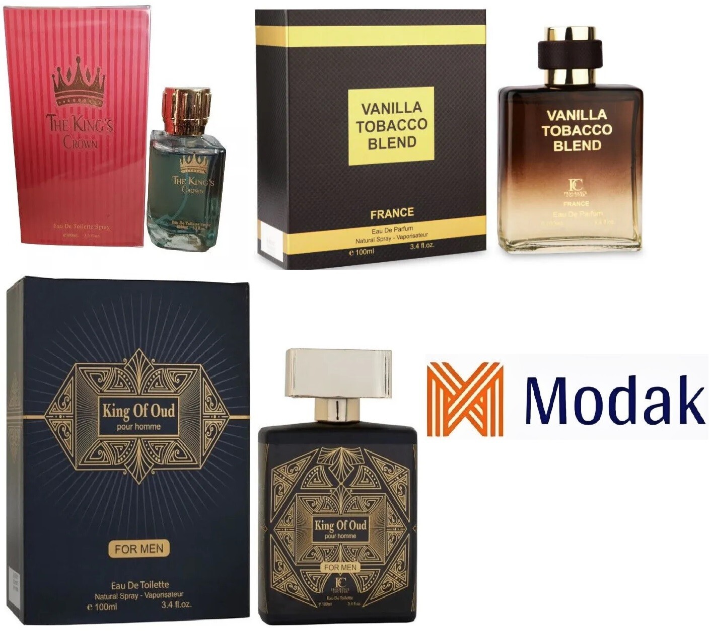 Modak 3 Pack Mens Perfume King of OUD,Vanilla Tobacco Blend,The Kings Crow 100ml